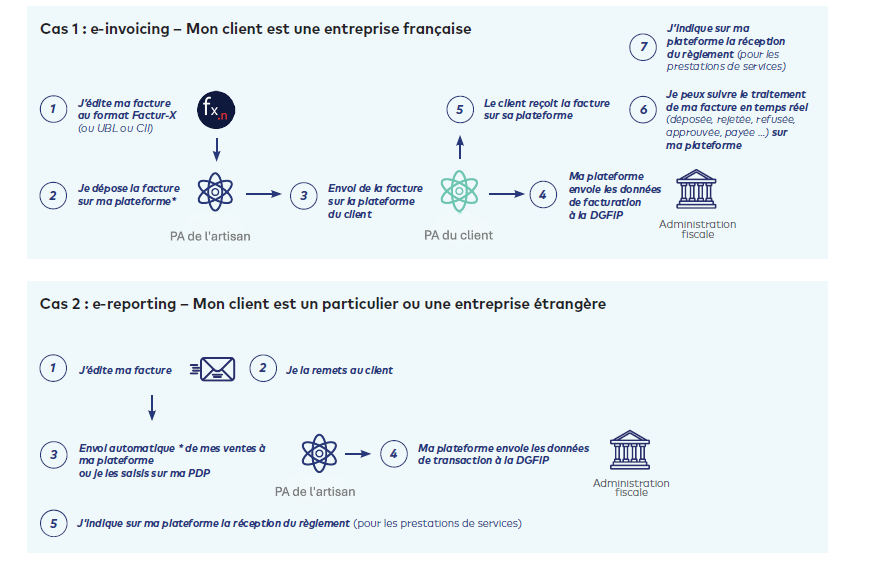 Obligation pour toutes les entreprises, y compris TPE et micro-entrepreneurs, d’émettre leurs factures électroniques (B2B en France) et de déclarer leurs ventes à des particuliers et à l’étranger via le e-reporting.